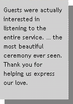 Your ceremony was special beyond our hopes. So many people have commented on the beauty of the service (especially the rose part)! With Love, Barbara |